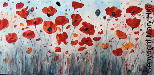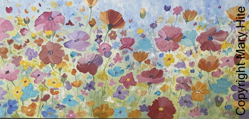 Perky Poppies. Acrylic on Board. 18" x 41" including frame. SOLD